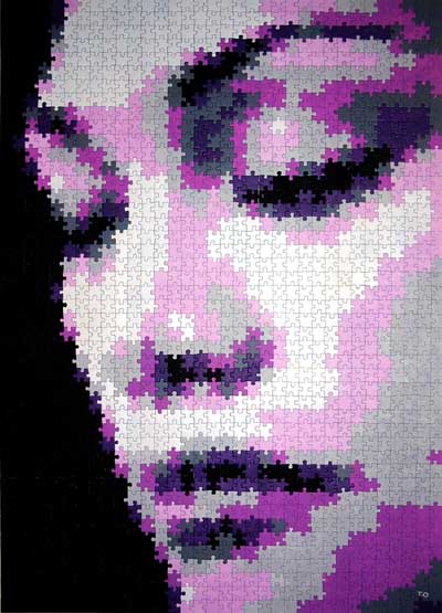 De plus, le visage réprésenté par le puzzle n’apparaît aux yeux de l’observateur qu’en fonction de la distance qu’il y a entre lui et l’oeuvre. Ceci crée un nouveau flou net.