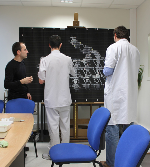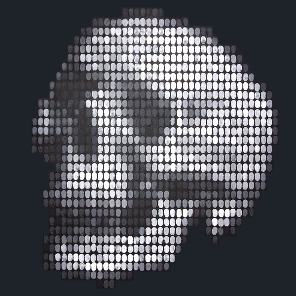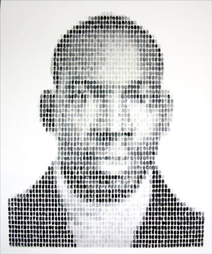 Olivier réalise le premier portrait constitué d’empreintes digitales, illustrant les nouvelles problématiques de l’identité et de la biométrie