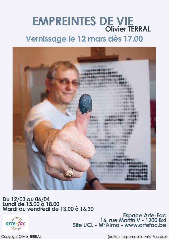 Le travail d’Olivier Terral s’articule autour de l’empreinte, de la trace, de la mémoire, de la transmission et de l’échange. Pendant deux ans, plusieurs toiles ont circulé sur les campus de l'université, afin que chacun puisse y apposer son empreinte. L'assemblage des six toiles lors de l'inauguration dévoilera une image par effet de pointillisme. Venez la découvrir jeudi 29 septembre à 19h !