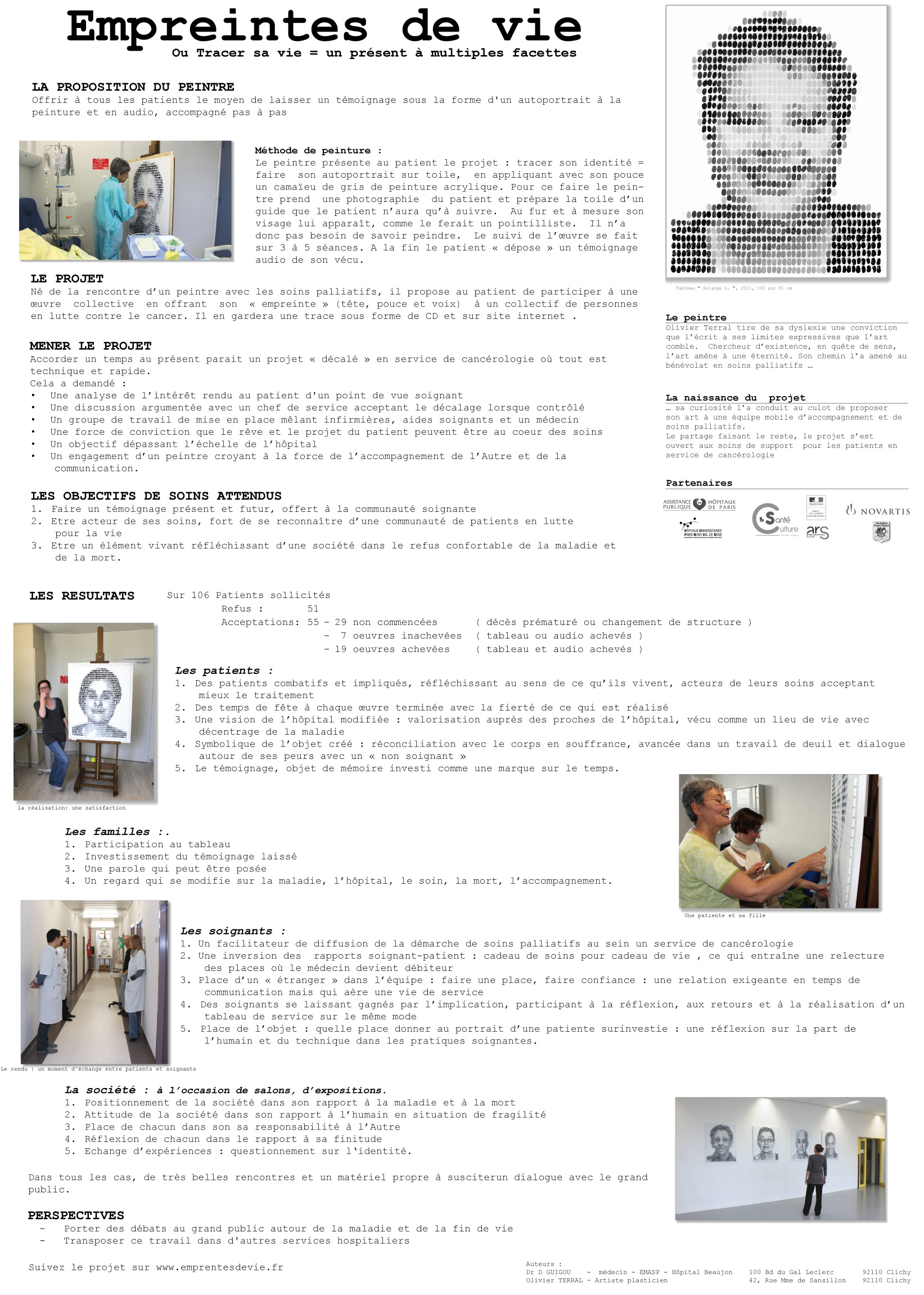 Présentation dans le cadre du vernissage de l'exposition "GIST, quel que chose en eux", du projet "Empreintes de Vie" avec le Profeseur Eric Raymond chef de service de cancérologie et le docteur David Guigou responsable de l'équipe de soins palliatifs. voire invitation
